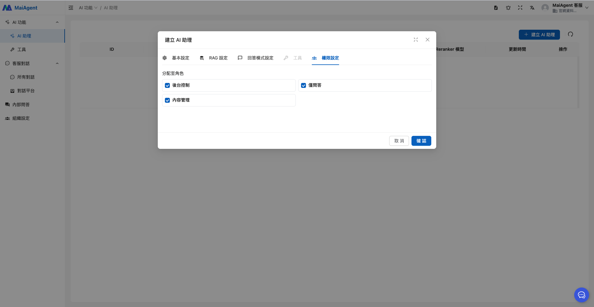 [基於 RABC 的權限管理架構與說明](https://docs.maiagent.ai/org/role-permission)