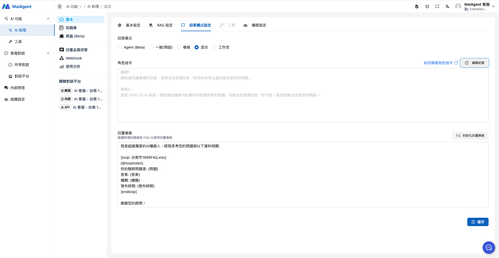 [甚麼是 角色指令？ 角色指令的範例模板？](https://docs.maiagent.ai/tech/ai-agents/system-prompt)