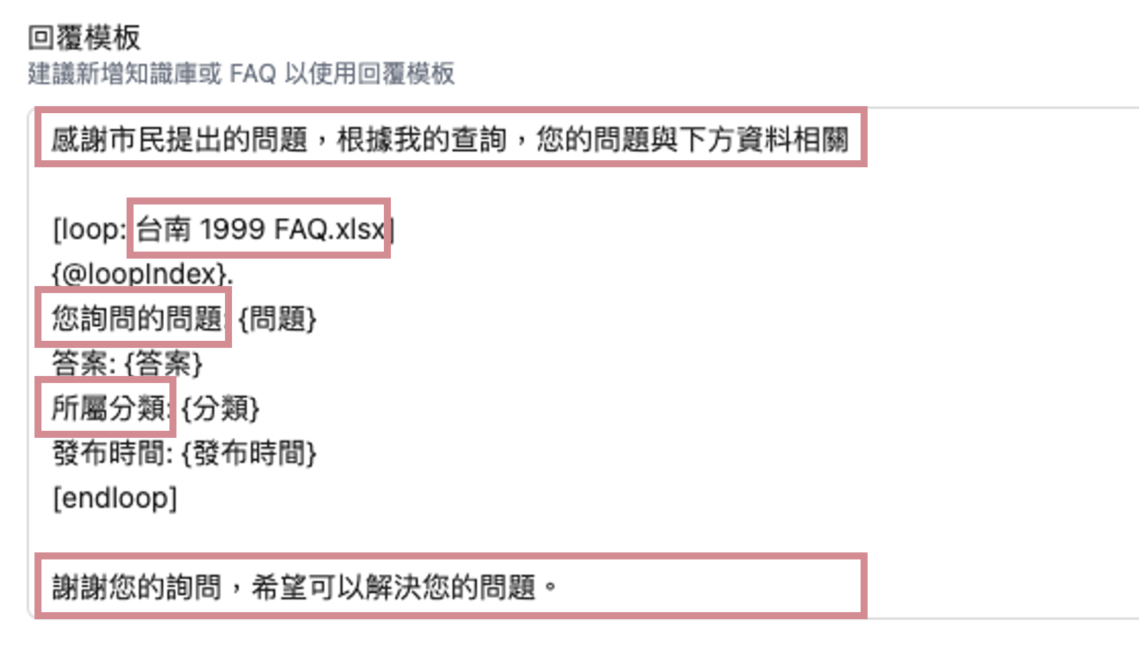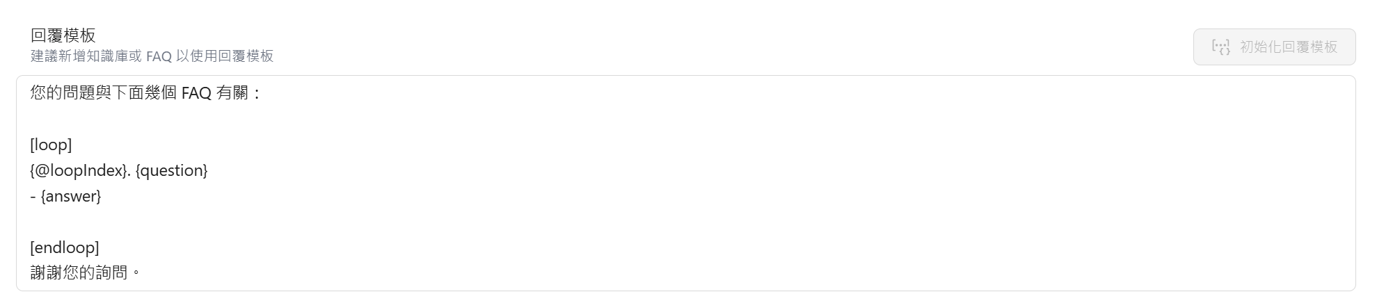 如果您尚未建立知識庫和 FAQ，回覆模板的指令內容預設如下。