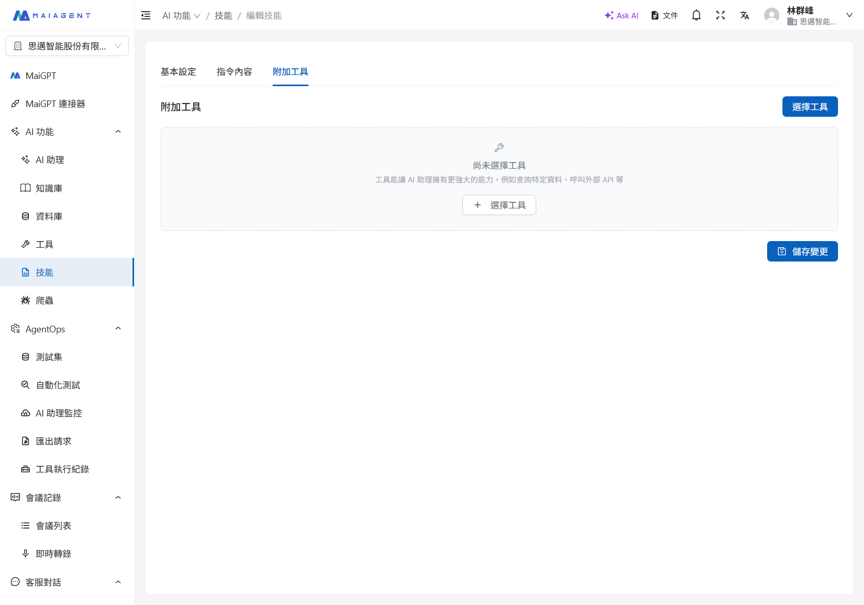 為技能綁定所需的工具，讓 AI 助理在執行技能時可以調用。