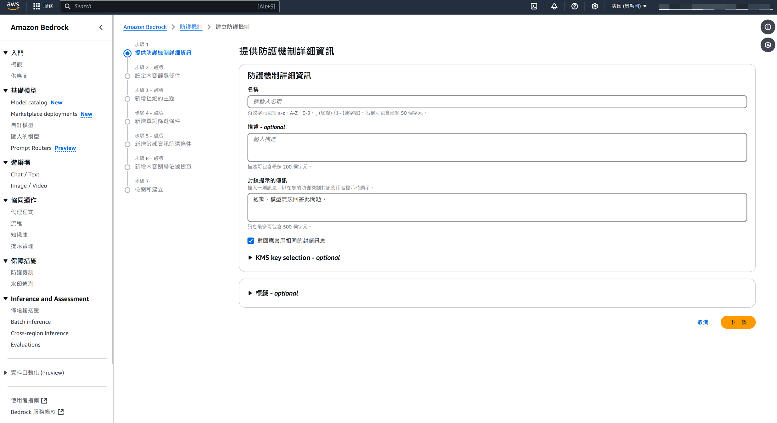### Step 1: Configure Settings (Name, Description, Blocked Message Response)