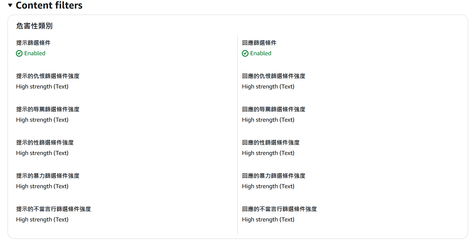 ### Step 2: Set Content Filtering (User Input, Assistant Response)
