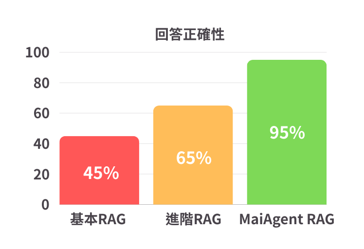 <figure><img src="https://3415477754-files.gitbook.io/~/files/v0/b/gitbook-x-prod.appspot.com/o/spaces%2FNBTi475lqozGpB7xObpE%2Fuploads%2Fgit-blob-6fd9eacb0dfc5dd2c1245505296717d272468f11%2Fimage%20(19).png?alt=media" alt="" width="561"><figcaption><p>MaiAgent RAG Response Accuracy</p></figcaption></figure>