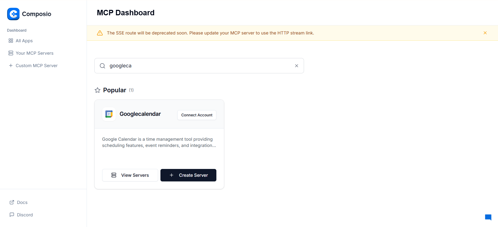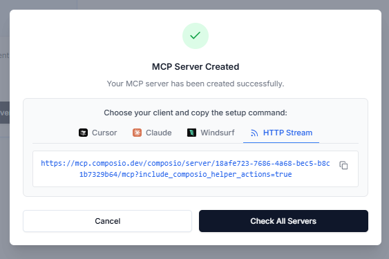 After server setup is complete, the system will generate a dedicated MCP server for you.