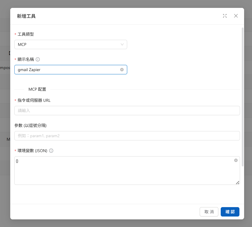 Parameters / Environment Variables / Allowed Tools: These fields can remain empty as MaiAgent will automatically fetch them from the MCP Server when saving the tool settings.