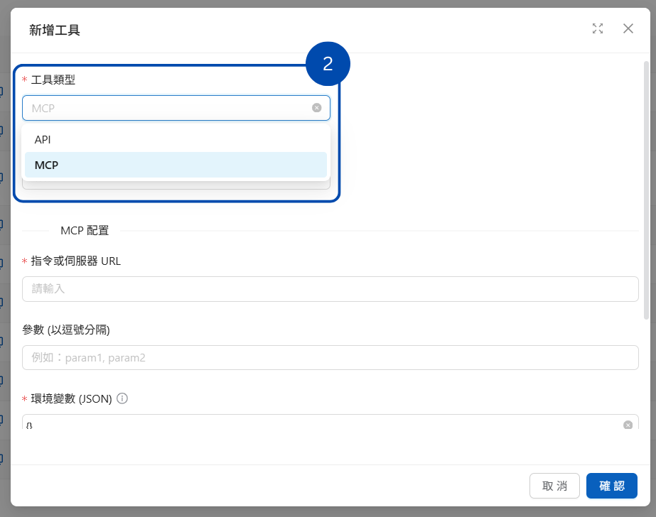 <figure><img src="https://1593648278-files.gitbook.io/~/files/v0/b/gitbook-x-prod.appspot.com/o/spaces%2Fmzb5NG9GDzFP2YDKeYVl%2Fuploads%2Fgit-blob-14cb970b83ae5611c86b25508ccdeabc052e120d%2FMCP%E5%B7%A5%E5%85%B7%20(6).png?alt=media" alt="MCP 環境變數設定示意圖"><figcaption><p>設定 MCP 環境變數</p></figcaption></figure>