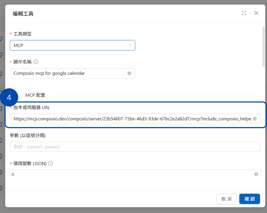 ### 4. 填寫 MCP 配置